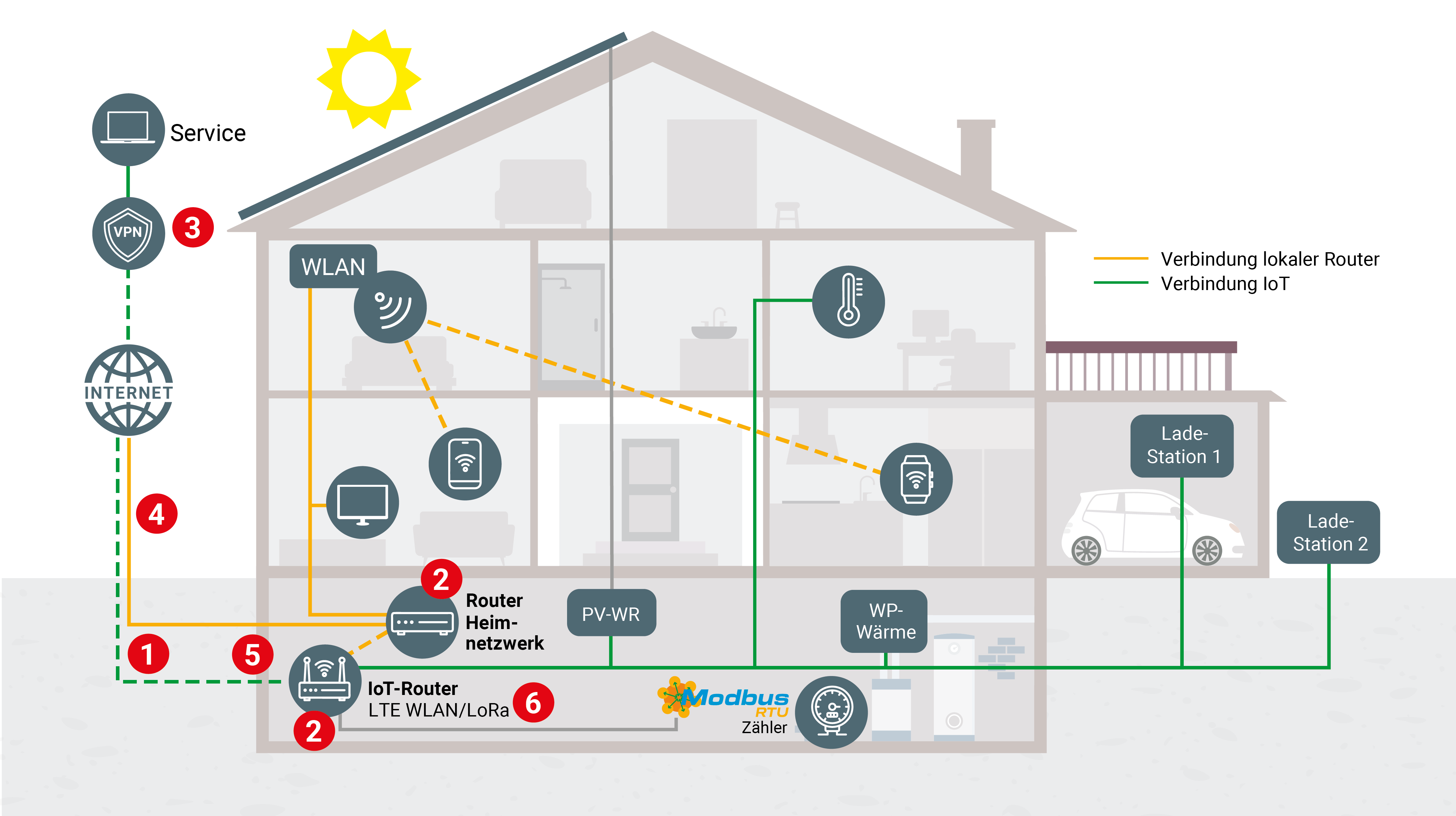 - Schnittstellen am Router: Unsere Geräte können optional mit verschiedenen Schnittstellen wie Cloud-Anbindung, RS485 (Mod-BusRTU), LoRa und WLAN ausgestattet werden.