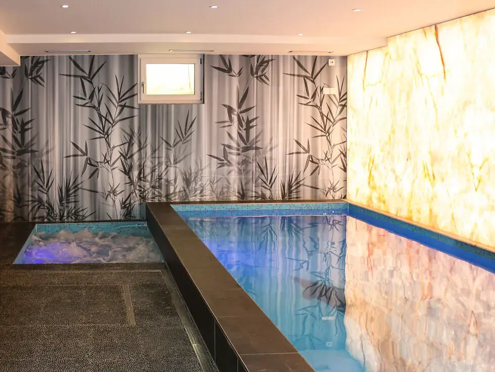 Der Rohbau wurde in Einsteinmauerwerk mit sämtlichen Werkleitungen ausgeführt. Besonders stimmungsvoll gestaltet zeigen sich die Innenräume: Der stilvolle Weinkeller mit Massivholz-Tisch, edlem Parkett und einer funkelnden Designer-Leuchte schafft ein warmes, einladendes Ambiente. Auch das Gäste-WC überzeugt mit handverlegten, dekorativen Platten, edlen Materialien und stimmiger Farbwahl. Im Aussenbereich runden Natursteinplatten, bepflanzte Flächen und ein hochwertiger Sichtschutz das Gesamtbild harmonisch ab.