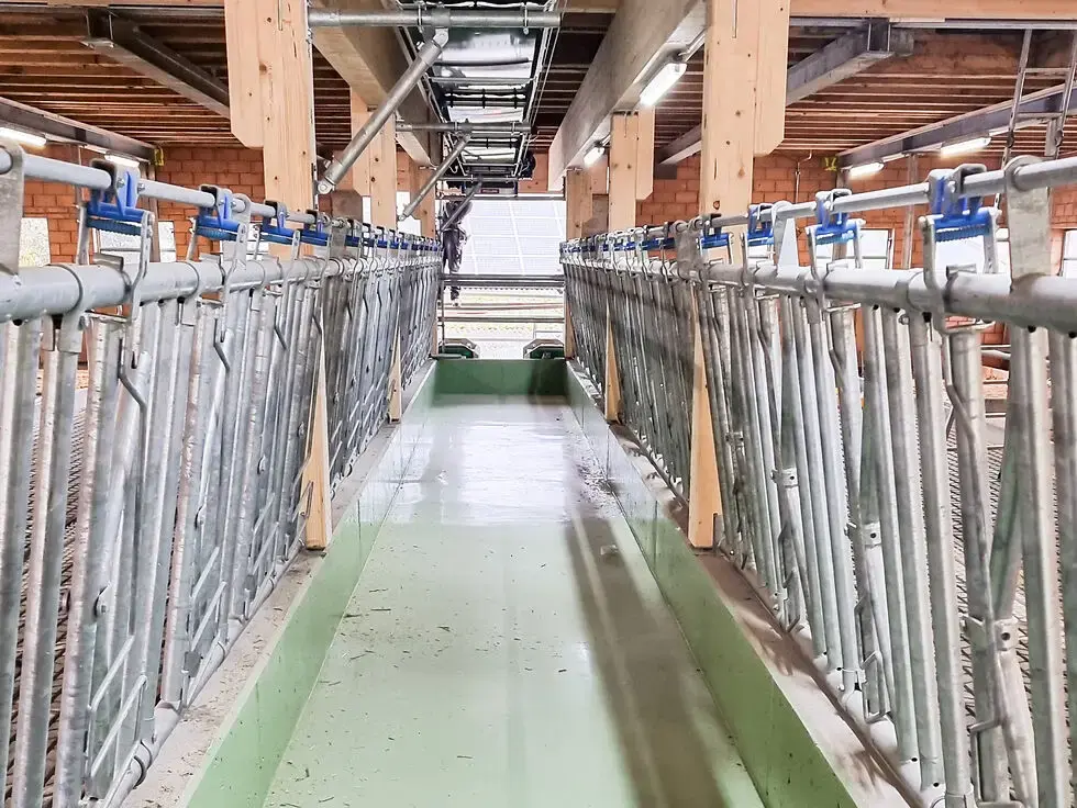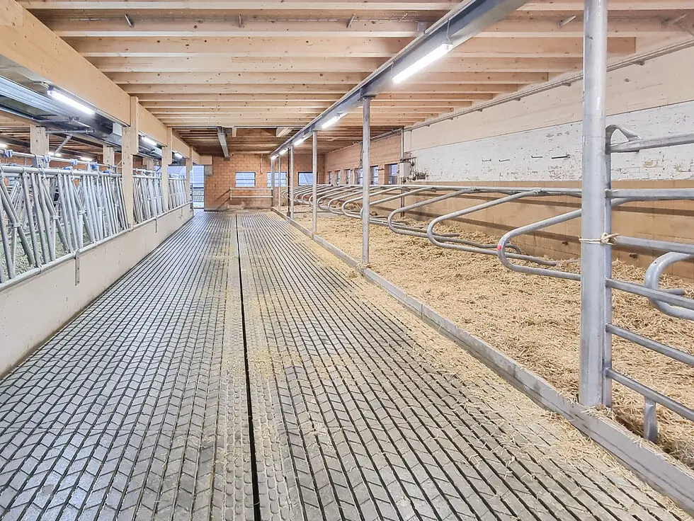 Dank sinnvollem Einsatz von Eigenleistungen hat Familie Scheibler ein kostenoptimierter Legehennenstall mit Jauchegrube gebaut. Die Wände und das Dach des neuen Legehennenstalls bestehen aus Sandwichpaneelen und die Fassade erscheint in Holz-Optik. Der Neubau bietet Platz für rund 2’000 Bio-Legehennen, einen grosszügigen Raum für Technik und Eiersortierung. Ebenfalls wurde eine Jauchegrube mit 300m3 gebaut. Der Kot wird mittels Kotband direkt und automatisch in die Jauchegrube transportiert und führt so zu einem optimalen Betriebsablauf. Dies bedeutet für die gesamte Produktionsperiode ein gesundes und optimales Umfeld für die Herde. Denn nur gesunde Hühner können gute Leistungen erbringen und zur Wirtschaftlichkeit des Betriebes beitragen. Ein gedeckter Wintergarten und Auslauf ins Freie komplettieren die hohen Anforderungen an die Bio-Eierproduktion.