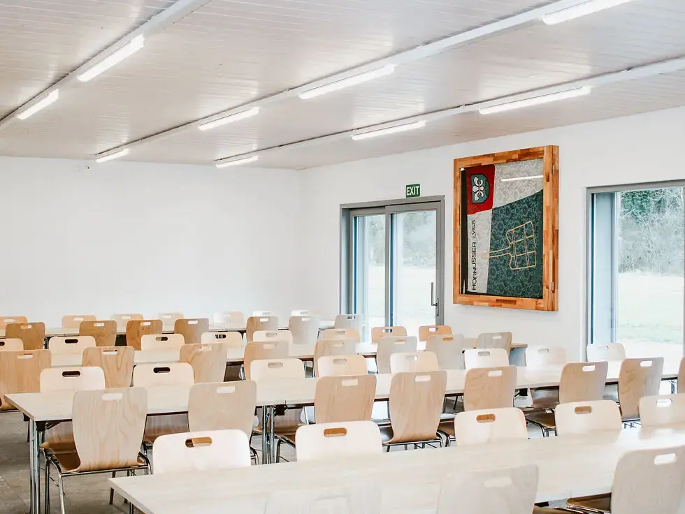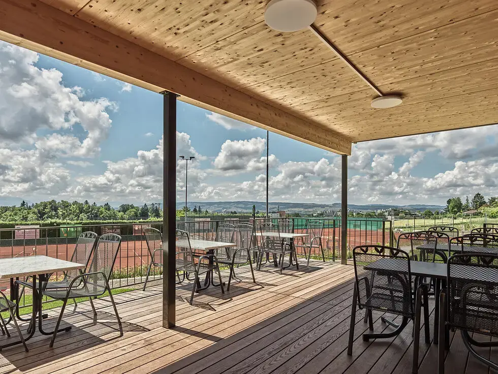 Für den TC Mutschellen realisierten wir den Holz-Neubau des Clubhauses. Vorfabrizierte Kastenelemente für Wände, Böden und Decken ermöglichten eine präzise und zügige Montage. Das Clubhaus umfasst einen grosszügigen Gemeinschaftsraum mit offengehaltener Küche sowie getrennte Nasszellen und Garderoben für Frauen und Männer, ergänzt durch eine einladende Terrasse. Die aussen aufgestellte Luft-Wasser-Wärmepumpe sorgt energieeffizient für Heizung und Warmwasser.